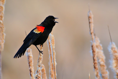 At last, Red-winged Blackbirds and their welcoming spring songs have moved into southern Wisconsin over the past few days. There were around a dozen displaying their bright red and yellow epaulets at the North Fork marsh last evening, and I was there to greet them. Other birds returning to the conservancy included Common Grackles, Belted Kingfishers, Killdeer, Sandhill Cranes, and more Song Sparrows. Now winds have shifted out of the northwest once again, which will slow the first wave.